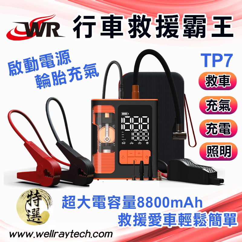 行車救援霸王TP7 8800mAh大容量 汽車 救車 多功能啟動電源 輪胎充氣機 打氣機 緊急照明 行動電源