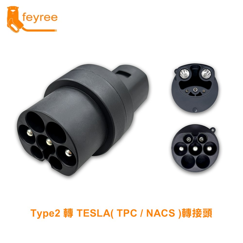 有了我們的轉接器,特斯拉駕駛員可以使用Type2 充電站。